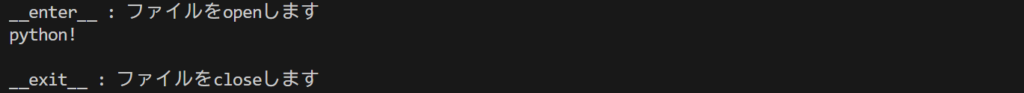 2.withブロックの内容が実行(ここではpython.txtの中身を表示)